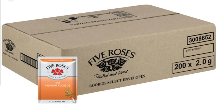 This premium rooibos blend, made by Five Roses, offers a delicate and caffeine-free tea experience. Each envelope is individually sealed for maximum freshness. Enjoy the natural benefits and rich flavour of rooibos with Five Roses Tea Rooibos Envelopes.